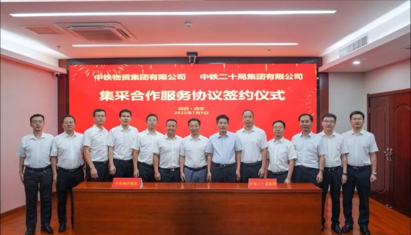 7月9日,中鐵物資與中鐵二十局簽署集采合作服務協議。雙方圍繞提高集采合作成效、強化供應鏈協同、推動降本增效、增強平臺應用等方面展開深入交流,重點落實推進中國鐵建供應鏈管理深化提升工作部署。中鐵物資副總經理王平與中鐵二十局副總經理陳耀華分別代表雙方企業簽署協議。