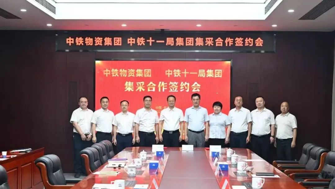 7月7日,中鐵物資與中鐵十一局簽署集采合作服務協議。雙方以貫徹落實中國鐵建供應鏈管理深化提升會議精神為核心主題,聚焦共建“智慧、高效、廉潔、韌性”的供應鏈協同體系,推動合作走深走實。中鐵物資黨委書記、董事長王輝與中鐵十一局黨委書記、董事長魏加志出席簽約儀式,中鐵物資副總經理王成偉與中鐵十一局副總經理王賢俊分別代表雙方企業簽署協議,中鐵物資副總經理、總會計師李芳,中鐵十一局副總經理、總會計師黎錫龍參加簽約儀式。